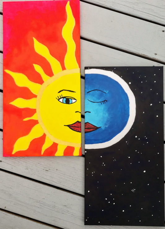 Asymmetrical Celestial Sun/Moon Canvas Wall Painting