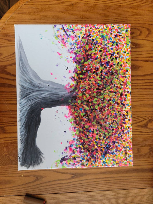 Colorful Black and White Tree Painting Acrylic on Canvas