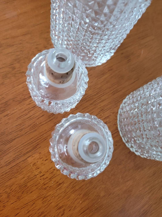 Diamond Cut Matching Set Whiskey Decanters Vase, Vintage 1970s Decor