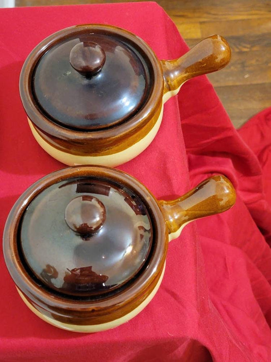 French Onion Soup Bowl Clay Soup Bowl, Stoneware Crock, Brown Drip Bowl, Mid Century Retro Ceramic, Retro Dinnerware, Lidded Bowl Set