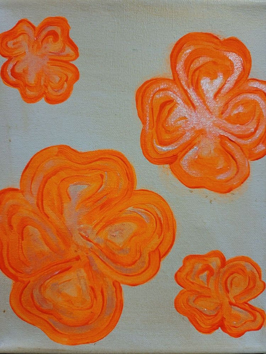 Original Mixed Medium Arcylic on 8"× 10" Canvas Vibrant Neons Glowing Orange Flowers
