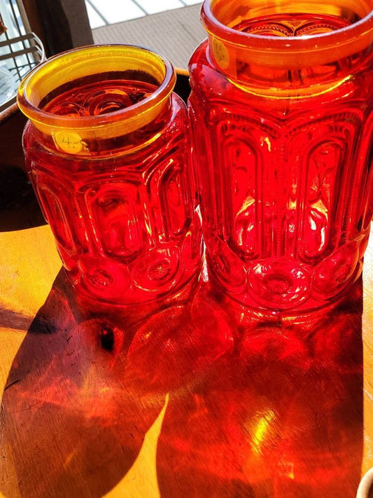 Vintage Red Glass Moon & Stars Canister Set Red Glass Canister Set (No Cover) Moon and Stars Made by Smith Glass 1970s Red Canisters 2 Piece