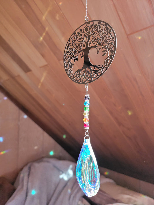 Tree of Life Crystal Sun Catcher Window Prism Amethyst Hanging Decoration