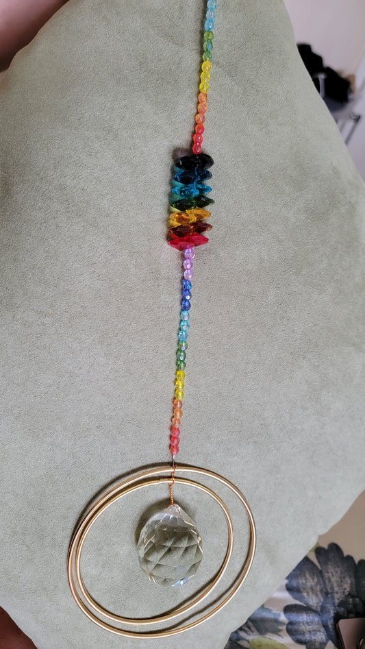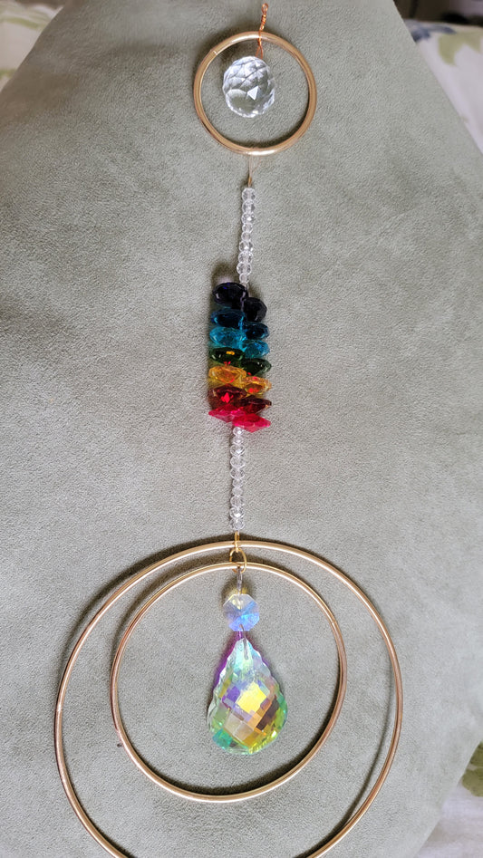 Double Clear Wrapped Rainbow 3 Ring Sun Catcher