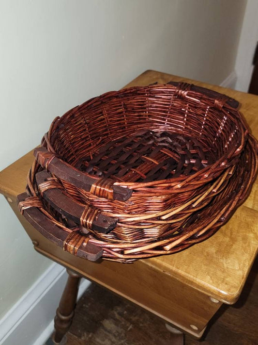 Dark Cherry Vintage Wicker Basket Set, Storage Basket, Vegetable Tray, 3 Nesting Set Decor