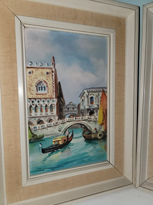 Pair of Vintage Oil Paintings of Piazza San Marco Venice; St. Marks Square, Venice; Original Italian Oil Painting of Saint Marks Square and Venetian Canal
