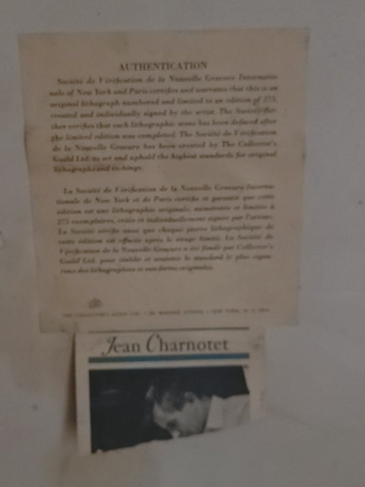 Jean Charnotet (French, 1930 - 1978) Lithograph on Rives paper. Signed in pencil and editioned 196/275. Authentication certificate from the Collector's Guild.